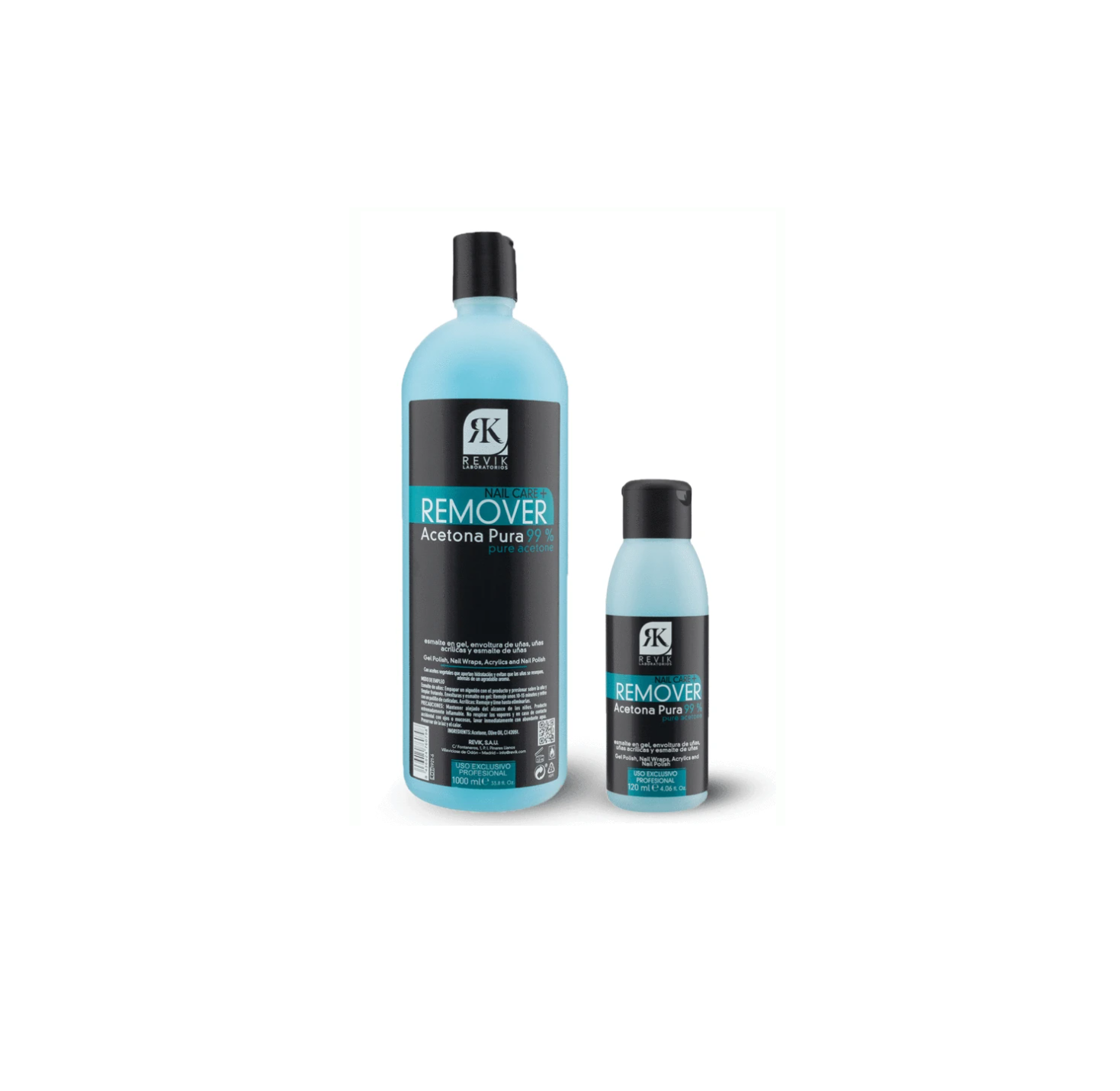Acetona pura de Revik con aceites vegetales que aportan hidratación y evitan que las uñas se resequen, además con un agradable aroma.