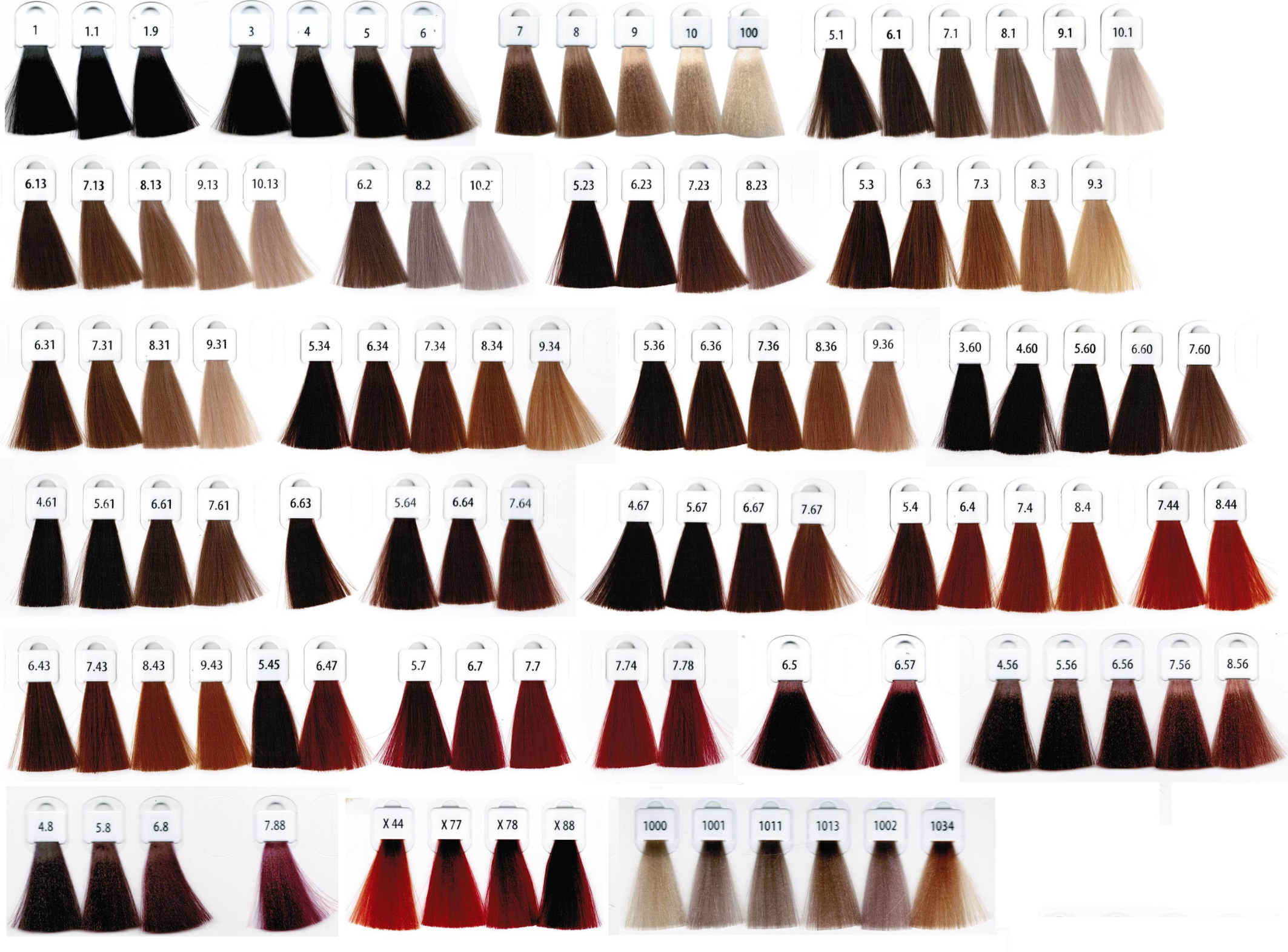 | ColorTinteCromatone | 1 Negro, 1.1 Negro Azulado, 10 Rubio Platino, 10.1 Rubio Platino Ceniza, 10.2 Rubio Platino Irisado, 100 Rubio Platino Clarísimo, 1000 Superaclarante Natural, 1001 Superaclarante Ceniza, 1002 Superaclarante Irisado, 1011 Superaclarante Ceniza Intenso, 3 Castaño Oscuro, 4 Castaño, 4.60 Castaño Marrón Natural, 4.61 Castaño Marrón Ceniza, 4.8 Castaño Purpura, 5 Castaño Claro, 5.1 Castaño Claro Ceniza, 5.23 Castaño Claro Irisado Dorado, 5.3 Castaño Claro Dorado, 5.36 Castaño Claro Dorado Marrón, 5.60 Castaño Claro Marrón Natural, 5.61 Castaño Claro Marrón Ceniza, 5.67 Castaño Claro Marrón Rojizo, 5.7 Castaño Claro Rojijzo, 5.8 Castaño Claro Púrpura, 6 Rubio Oscuro, 6.1 Rubio Oscuro Ceniza, 6.23 Rubio Oscuro Irisado Dorado, 6.31 Rubio Oscuro Dorado Ceniza, 6.34 Rubio Oscuro Dorado Cobrizo, 6.36 Rubio Oscuro Dorado Marrón, 6.43 Rubio Oscuro Cobrizo Dorado, 6.5 Rubio Oscuro Caoba, 6.57 Rubio Oscuro Caoba Rojizo, 6.60 Rubio Oscuro Marrón Natural, 6.61 Rubio Oscuro Marrón Ceniza, 6.63 Rubio Oscuro Marrón Dorado, 6.64 Rubio Oscuro Marrón Cobrizo, 6.7 Rubio Oscuro Rojizo, 6.8 Rubio Oscuro Púrpura, 7 Rubio, 7.1 Rubio Ceniza, 7.13 Rubio Ceniza Dorado, 7.23 Rubio Irisado Dorado, 7.3 Rubio Dorado, 7.31 Rubio Dorado Ceniza, 7.36 Rubio Dorado Marrón, 7.43 Rubio Cobrizo Dorado, 7.44 Rubio Cobrizo Intenso, 7.60 Rubio Marrón Natural, 7.61 Rubio Marrón Ceniza, 7.63 Rubio Marrón Dorado, 7.64 Rubio Marrón Cobrizo, 7.67 Rubio Marrón Rojizo, 7.7 Rubio Rojizo, 7.74 Rubio Rojizo Cobrizo, 7.78 Rubio Rojizo Púrpura, 7.88 Rubio Púrpura Intesno, 8 Rubio Claro, 8.1 Rubio Claro Ceniza, 8.13 Rubio Claro Ceniza Dorado, 8.23 Rubio Claro Irisado Dorado, 8.3 Rubio Claro Dorado, 8.31 Rubio Claro Dorado Ceniza, 8.36 Rubio Claro Dorado Marrón, 8.4 Rubio Claro Cobrizo, 8.44 Rubio Claro Cobrizo Intenso, 9 Rubio Extraclaro, 9.1 Rubio Extraclaro Ceniza, 9.3 Rubio Extraclaro Dorado, 9.31 Rubio Extraclaro Dorado Ceniza, P5 Castaño Claro Plus, P6 Rubio Oscuro Plus, P7 Rubio Plus, P8 Rubio Claro Plus, X44 Xtrem Cobre Intenso, X77 Xtrem Rojo Intenso, X78 Xtrem Rojizo Púrpura, X88 Xtrem Púrpura Intenso |