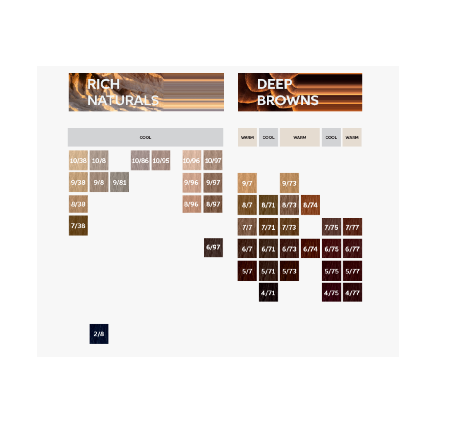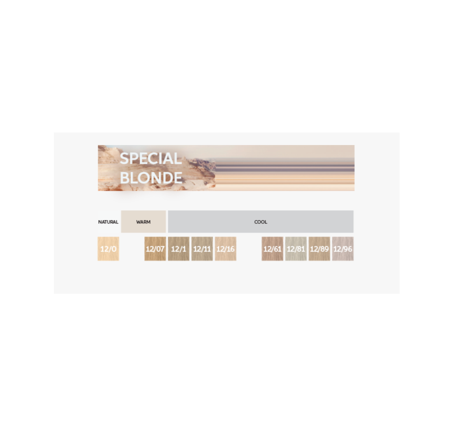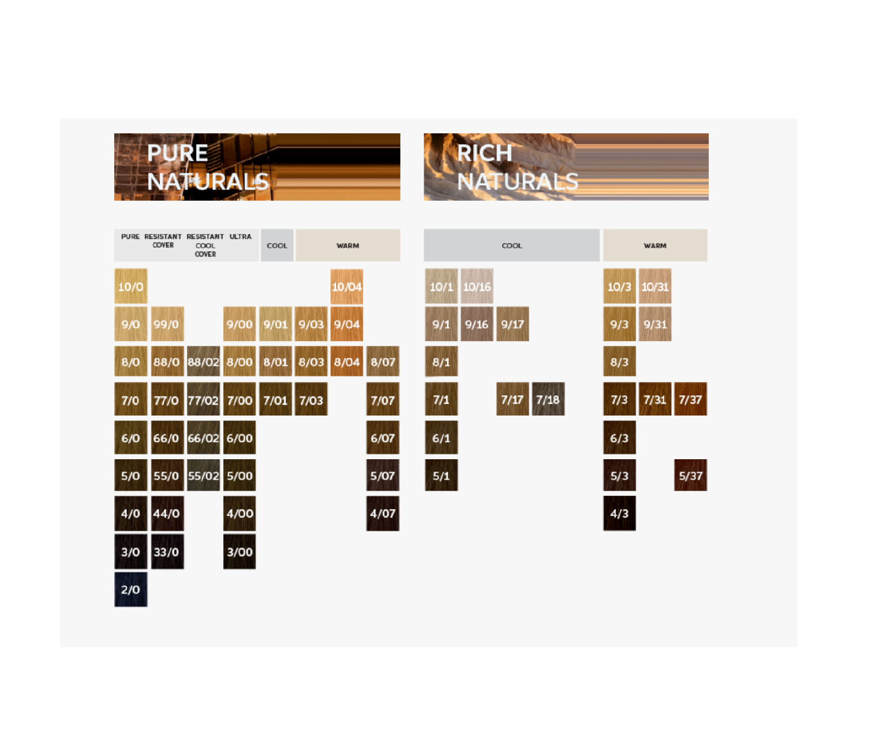 10/0 Rubio Super Claro Intenso, 10/03 Rubio Super Claro Natural Dorado, 10/1 Rubio Super Claro Ceniza, 10/16 Rubio Super Claro Ceniza Violeta, 10/3 Rubio Super Claro Dorado, 10/38 Rubio Super Claro Dorado Perla, 10/8 Rubio Super Claro Perla, 10/96 Rubio Super Claro Cendré Violeta, 12/0 Superaclarante Rubio Natural, 12/1 Superaclarante Rubio Ceniza, 12/11 Superaclarante Rubio Ceniza Intenso, 12/61 Superaclarante Rubio Violeta Ceniza, 12/89 Superaclarante Rubio Perla Cendré, 12/96 Superaclarante Rubio Cendré Violeta, 2/0 Negro, 2/8 Negro Azulado, 3/0 Castaño Oscuro Intenso, 3/00 Castaño Oscuro Natural, 33/66 Castaño Oscuro Intenso Violeta Intenso, 4/0 Castaño Medio Intenso, 4/00 Castaño Medio Natural, 4/77 Castaño Medio Marrón Intenso, 44/65 Castaño Medio Intenso Violeta Caoba, 44/66 Castaño Medio Violeta Intenso, 5/0 Castaño Claro Intenso, 5/00 Castaño Claro Natural, 5/1 Castaño Claro Ceniza, 5/5 Castaño Claro Caoba, 5/7 Castaño Claro Marrón, 5/73 Castaño Claro Marrón Dorado, 5/77 Castaño Claro Marrón Intenso, 55/46 Castaño Claro Cobrizo Violeta, 55/55 Castaño Claro Intenso Caoba Intenso, 55/65 Castaño Claro Intenso Violeta Caoba, 55/66 Castaño Claro Violeta Intenso, 6/0 Rubio Oscuro Intenso, 6/00 Rubio Oscuro Natural, 6/07 Rubio Oscuro Natural Marrón, 6/1 Rubio Oscuro Ceniza, 6/3 Rubio Oscuro Dorado, 6/4 Rubio Oscuro Cobrizo, 6/43 Rubio Oscuro Cobrizo Dorado, 6/45 Rubio Oscuro Cobrizo Caoba, 6/7 Rubio Oscuro Marrón, 6/71 Rubio Oscuro Marrón Ceniza, 6/73 Rubio Oscuro Marrón Dorado, 6/74 Rubio Oscuro Marrón Cobrizo, 6/77 Rubio Oscuro Marrón Intenso, 66/0 Rubio Oscuro Intenso (Alta Cobertura), 66/46 Rubio Oscuro Intenso Cobrizo Violeta, 66/56 Rubio Oscuro Intenso Caoba Violeta, 7/0 Rubio Medio Intenso, 7/00 Rubio Medio Natural, 7/01 Rubio Medio Natural Ceniza, 7/03 Rubio Medio Natural Dorado, 7/07 Rubio Medio Natural Marrón, 7/1 Rubio Medio Ceniza, 7/17 Rubio Medio Ceniza Marrón, 7/3 Rubio Medio Dorado, 7/34 Rubio Medio Dorado Cobrizo, 7/37 Rubio Medio Dorado Marrón, 7/38 Rubio Medio Dorado Perla, 7/43 Rubio Medio Cobrizo Dorado, 7/45 Rubio Medio Cobrizo Caoba, 7/47 Rubio Medio Cobrizo Marrón, 7/7 Rubio Medio Marrón, 7/71 Rubio Medio Marrón Ceniza, 7/73 Rubio Medio Marrón Dorado, 7/75 Rubio Medio Marrón Caoba, 7/77 Rubio Medio Marrón Intenso, 77/0 Rubio Medio Intenso (Alta Cobertura), 77/43 Rubio Medio Intenso Cobrizo Dorado, 77/44 Rubio Medio Intenso Cobrizo Intenso, 77/46 Rubio Medio Intenso Cobrizo Violeta, 8/0 Rubio Claro Intenso, 8/00 Rubio Claro Natural, 8/01 Rubio Claro Natural Ceniza, 8/03 Rubio Claro Natural Dorado, 8/07 Rubio Claro Natural Marrón, 8/1 Rubio Claro Ceniza, 8/3 Rubio Claro Dorado, 8/34 Rubio Claro Dorado Cobrizo, 8/38 Rubio Claro Dorado Perla, 8/7 Rubio Claro Marrón, 8/71 Rubio Claro Marrón Ceniza, 8/73 Rubio Claro Marrón Dorado, 8/74 Rubio Claro Marrón Cobrizo, 8/96 Rubio Claro Cendré Violeta, 8/97 Rubio Claro Cendré Marrón, 88/0 Rubio Claro Intenso (Alta Cobertura), 88/43 Rubio Claro Intenso Cobrizo Dorado, 9/0 Rubio Muy Claro Intenso, 9/00 Rubio Muy Claro Natural, 9/01 Rubio Muy Claro Natural Ceniza, 9/03 Rubio Muy Claro Natural Dorado, 9/1 Rubio Muy Claro Ceniza, 9/16 Rubio Muy Claro Ceniza Violeta, 9/3 Rubio Muy Claro Dorado, 9/38 Rubio Muy Claro Dorado Perla, 9/7 Rubio Muy Claro Marrón, 9/73 Rubio Muy Claro Marrón Dorado, 9/8 Rubio Muy Claro Perla, 9/96 Rubio Muy Claro Cendré Violeta